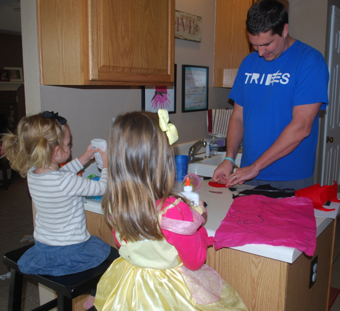 This time around, we just pieced together the different pieces of tissue paper onto their initials. I forgot to get a picture of these but you can kind of catch a glimpse of Little K's on the last photo of this post.